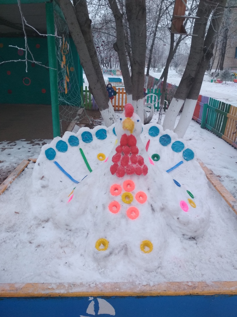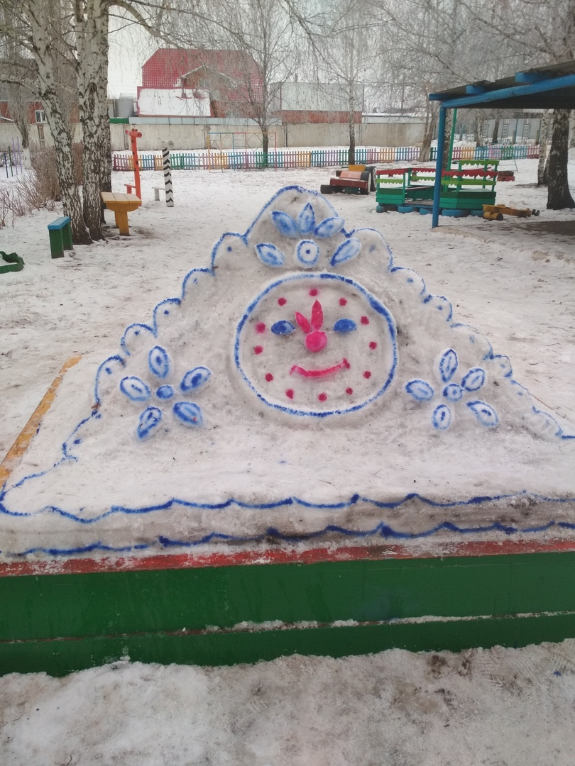 В нашем детском саду уже несколько лет зимой на участке появляется снежный городок. Дошкольники с радостью встречают знакомые персонажи любимых сказок и фольклорных произведений.
