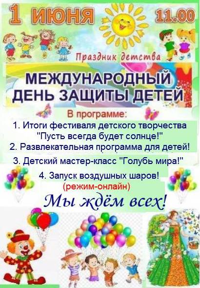 Международный день защиты детей ‑ это, прежде всего, напоминание взрослым о необходимости соблюдения прав детей на жизнь, на свободу мнения и религии, на образование, отдых и досуг, на защиту от физического и психологического насилия, на защиту от эксплуатации детского труда как необходимых условий для формирования гуманного и справедливого общества.
